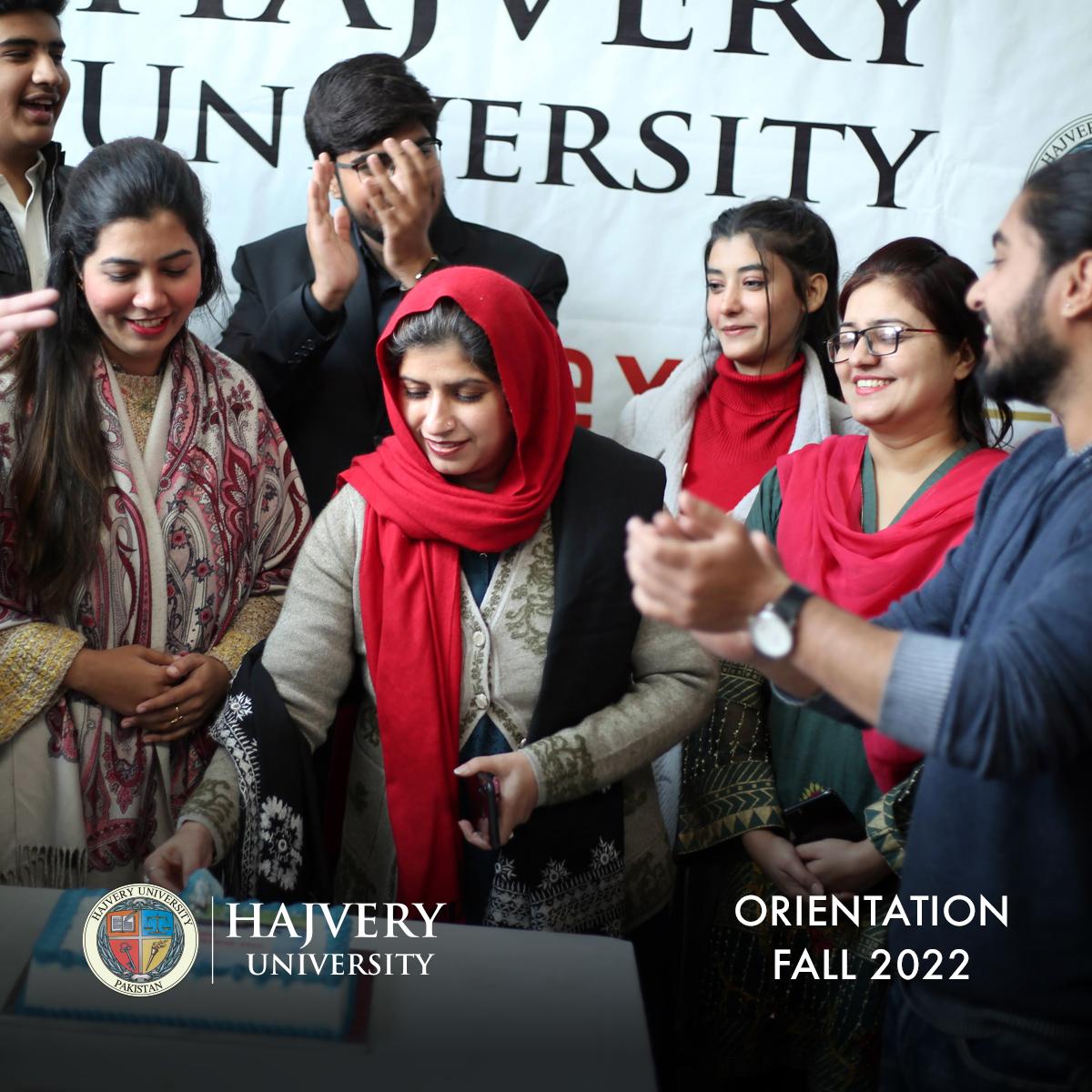Mr. Fahd Sheikh, HU Director, of International Affairs delivered the closing speech and emphasized that the future is bright for all the students who endeavor to make the most of all the wonderful and amazing opportunities that Hajvery University (HU) provides to its students, inside and outside the classrooms. The Orientation Program ended with a Cake cutting ceremony for the students and faculty alike.